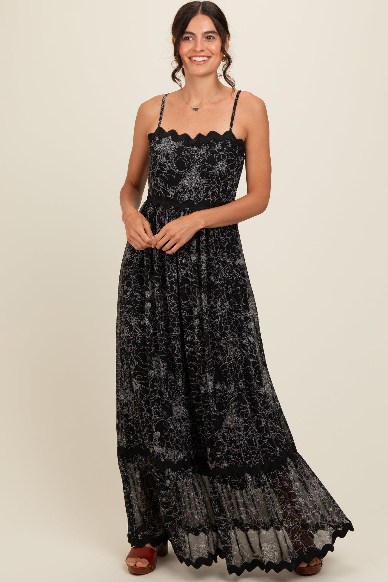 Stay stylish and comfortable throughout your pregnancy in our Floral Contrast Trim Maternity Maxi Dress. Featuring a flattering empire waist and soft, stretchy fabric, this dress adapts beautifully to your changing shape. The elegant backdrop is adorned with vibrant floral prints, while unique contrast trim adds a chic, modern touch. Perfect for both casual days and special occasions, its flowy silhouette ensures ease of movement and all-day comfort. Pair with sandals or dress it up with heels for a versatile look you’ll love before and after baby arrives. Shop your new favorite maternity maxi dress today!