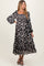 Black Floral Damask Print Smocked Maternity Midi Dress