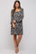 A floral maternity dress with a squared neckline, long sleeves, and a smocked back. Dress is partially lined.