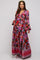 Details A floral maternity maxi dress with long sleeves, a v-neckline, elastic under the bust, and a tiered skirt. Dress is lined two thirds of the way down. Content + Care