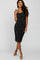 Black Floral Ribbed Ruched Shoulder Tie Dress