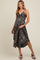 Black Floral Satin Front Tie Sleeveless Maternity Midi Dress