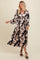 Black Floral Satin Pleated V-Neck Maxi Dress