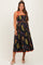 Black Floral Scallop Edge Shoulder Tie Maternity Midi Dress
