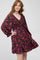 A floral print dress featuring a v-neckline, long sleeves with a ruffle cuff, a smocked elastic front and a ruffle hem.