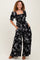 Black Floral Smocked Square Neck Wide Leg Jumpsuit