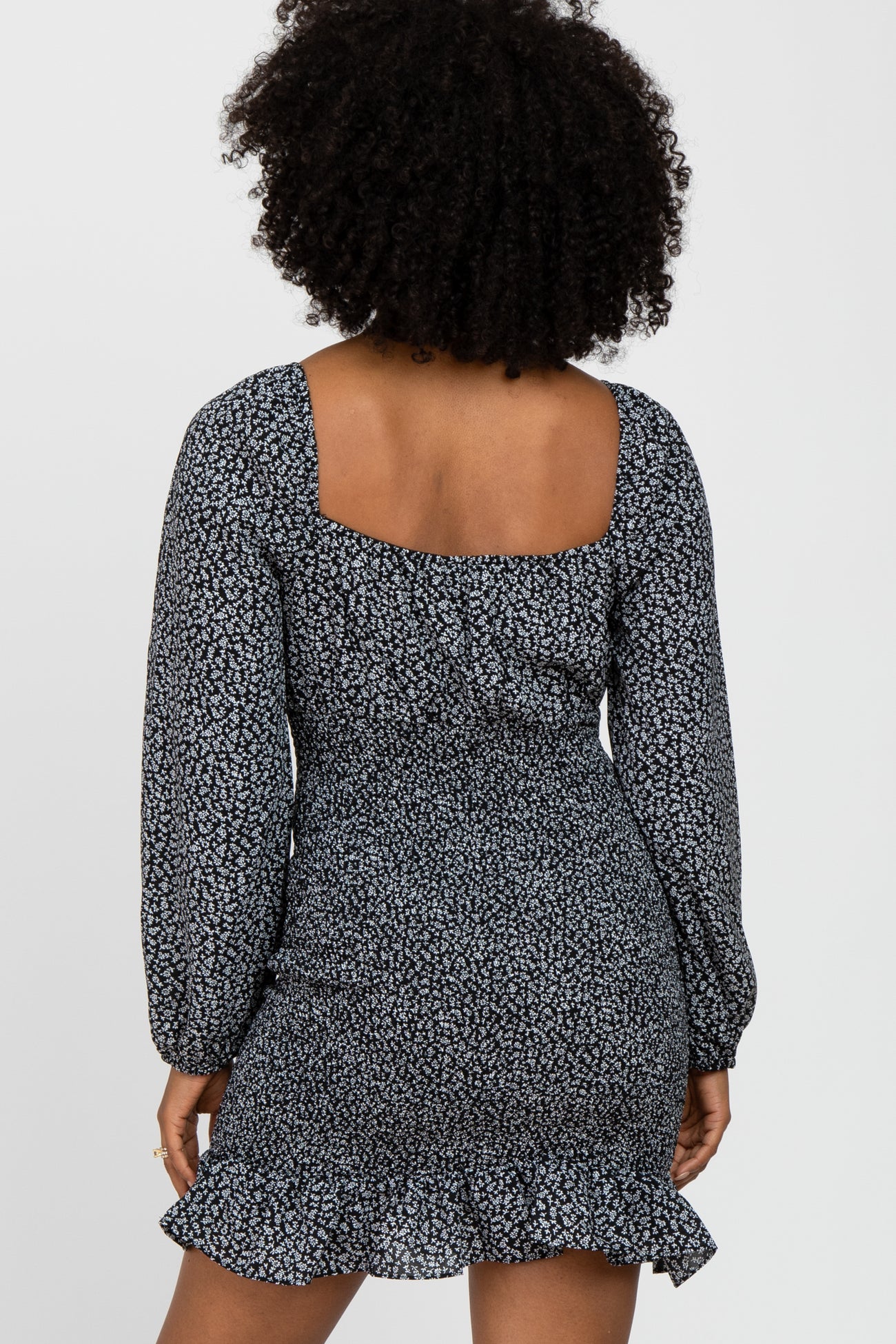 Black Floral Sweetheart Neck Smocked Dress