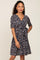 Black Floral Wrap Front V-Neck Short Sleeve Dress