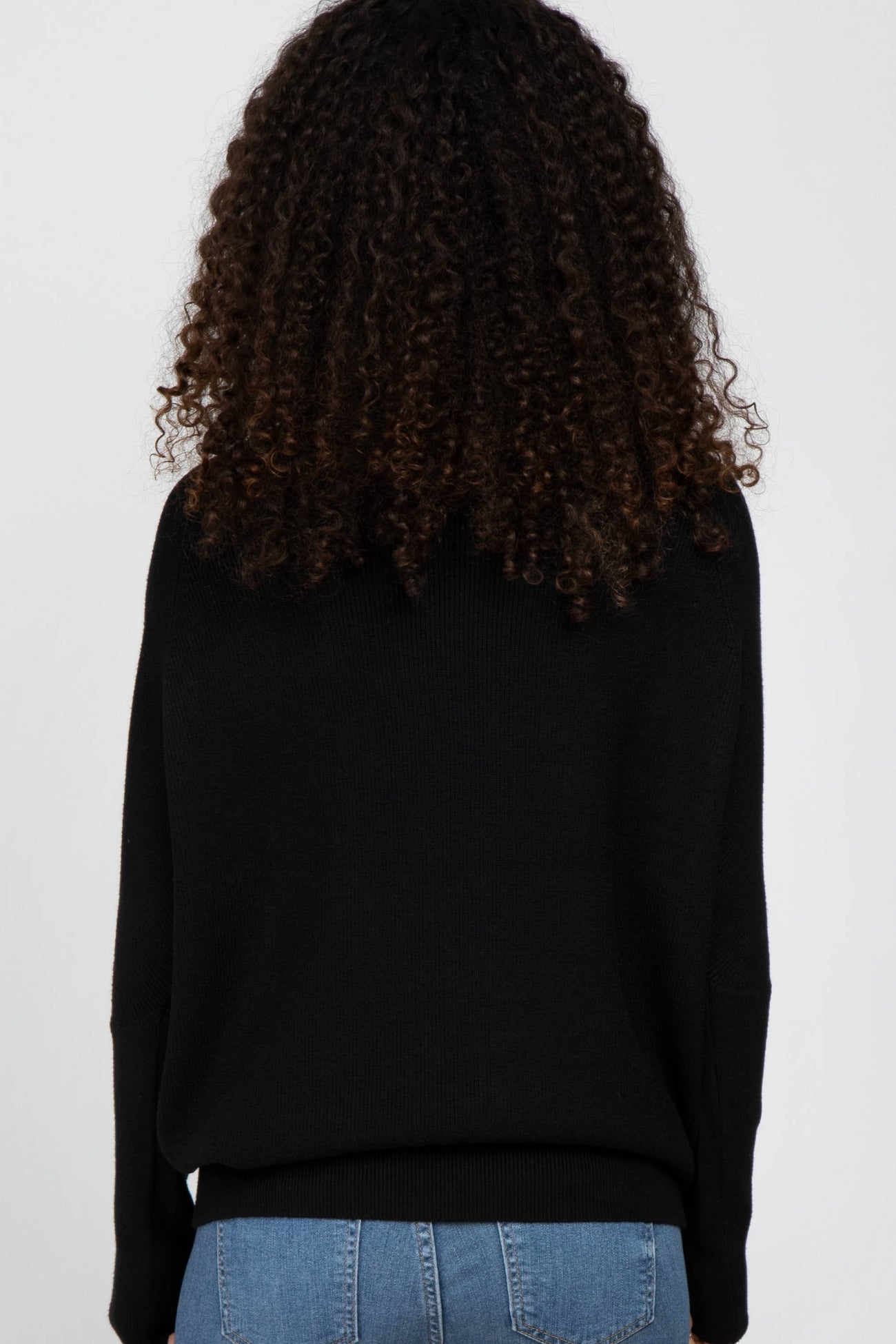A solid hued sweater featuring a funnel neckline, long dolman sleeves and a fitted bottom hem.