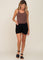 A pair of double layered gauze maternity shorts with an elastic waistband and side pockets.