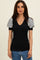 Black/Ivory Striped Ribbed Short Puff Sleeve V-Neck Top