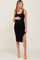 A solid knit maternity fitted sleeveless midi dress with a square neckline and a side slit.