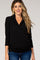 Details A solid hued knit maternity top with a draped v-neckline, 3/4 sleeves, and cinched sides. Content + Care