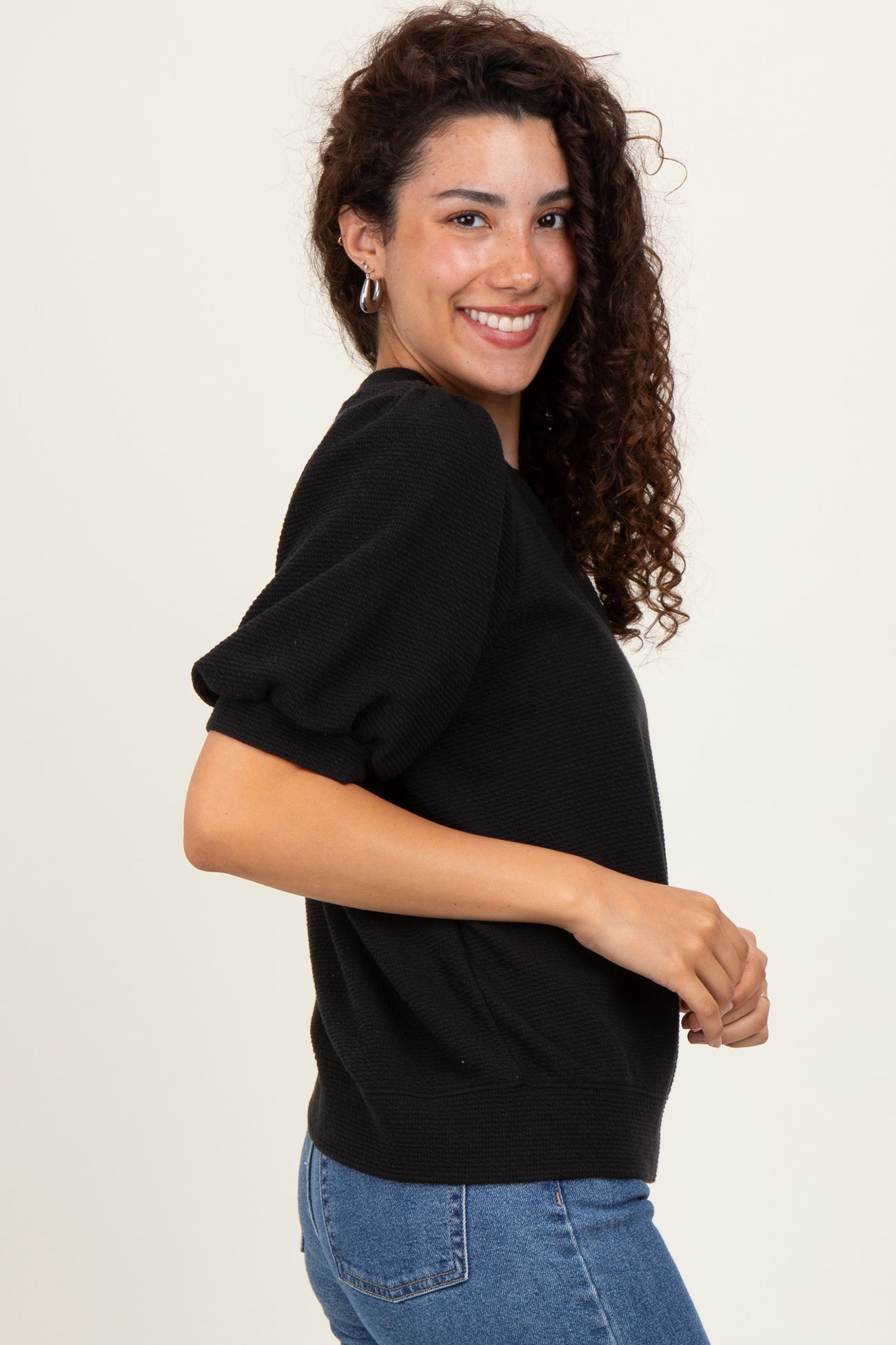 Elevate your everyday style with our Black Knit Puff Sleeve Top, designed to add a touch of elegance to your casual wardrobe. Crafted from a soft, textured knit fabric, this top offers both comfort and sophistication. The highlight is its chic puff sleeves that create a flattering silhouette and add a trendy, feminine flair. Featuring a classic crew neckline and a relaxed fit, it pairs perfectly with jeans or skirts for versatile looks. Whether you're dressing up for brunch or keeping it cozy at home, this top is a stylish staple you'll love reaching for all season long. Easy to care for and effortlessly fashionable!