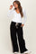 Black Lace Stripe Drawstring Maternity Lounge Pants