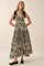 Black Leaf Print Smocked Shoulder Tie Tiered Maxi Dress