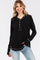 A solid hued top featuring long sleeves with thumb holes, an exposed seam, front buttons and a curved hem.