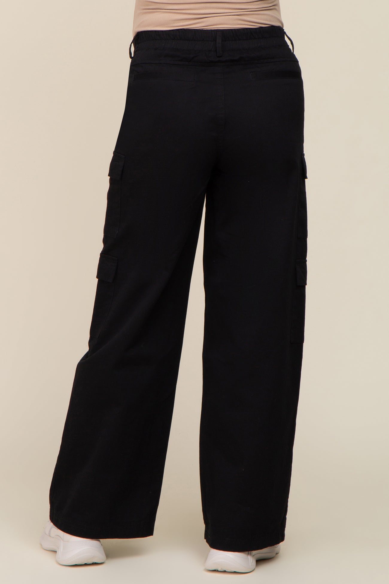 Black Maternity Double Pocket Wide Leg Cargo Pants