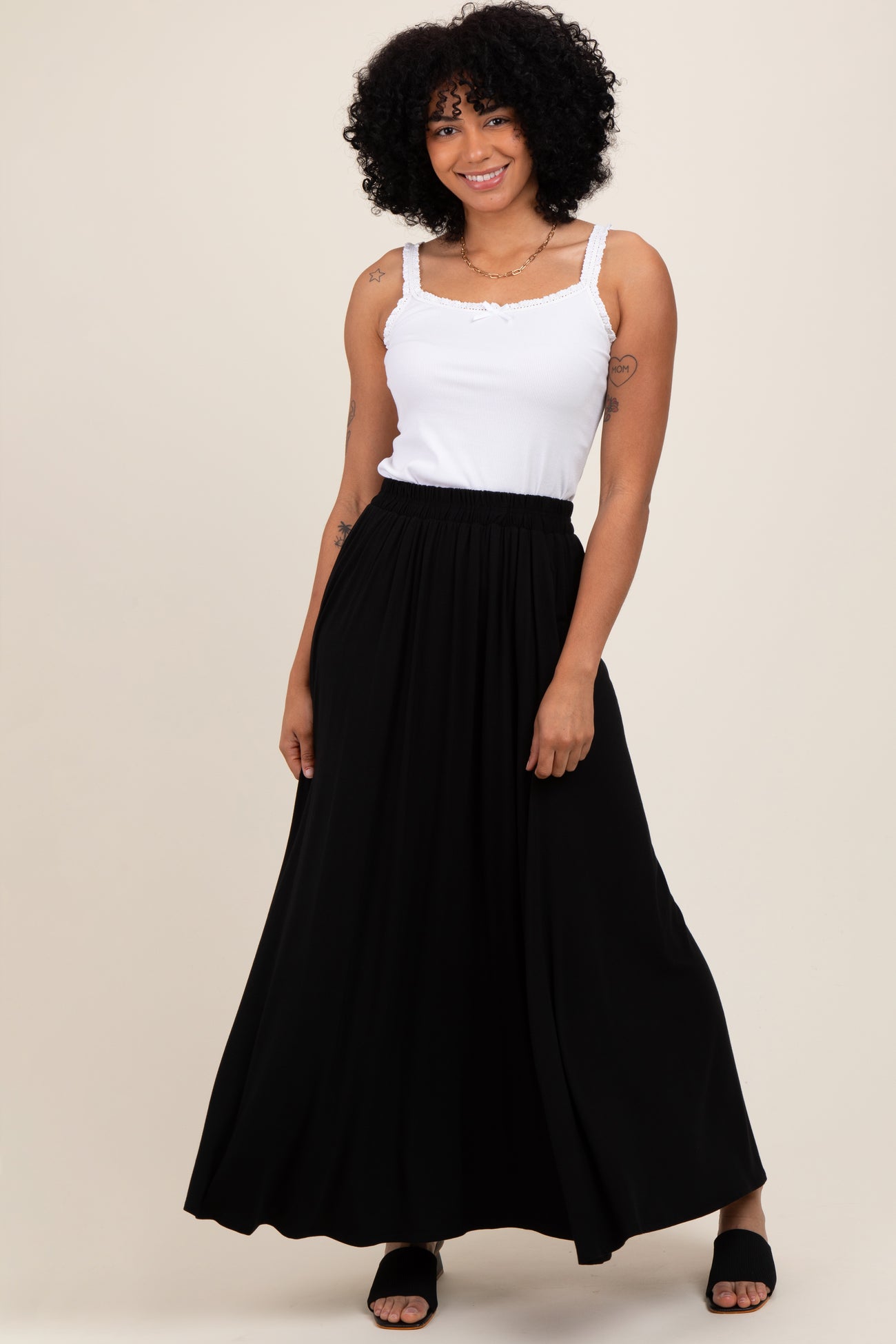 Experience comfort and style with our Black Maternity Maxi Skirt, designed to gracefully accommodate your growing bump. Crafted from soft, breathable fabric, this skirt offers an elastic waistband that ensures a perfect fit throughout all stages of pregnancy. Its flowing maxi length provides effortless movement and a flattering silhouette, perfect for both casual outings and special occasions. Pair it with your favorite tops and shoes for versatile maternity wear that keeps you feeling confident and comfortable every day. Elevate your maternity wardrobe with this timeless essential.