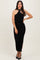 Black Mesh Draped Scarf Ruched Midi Dress