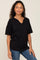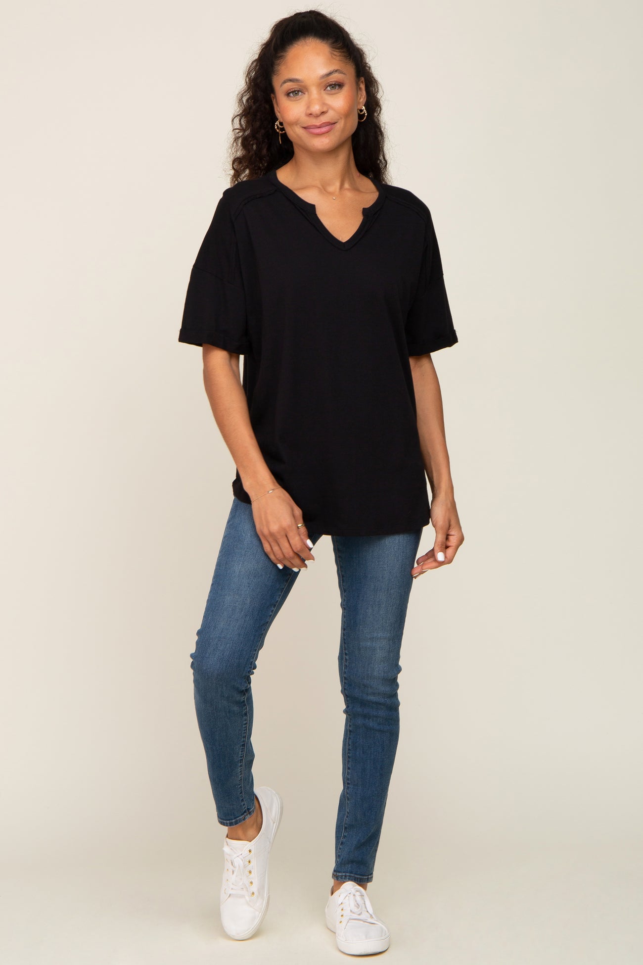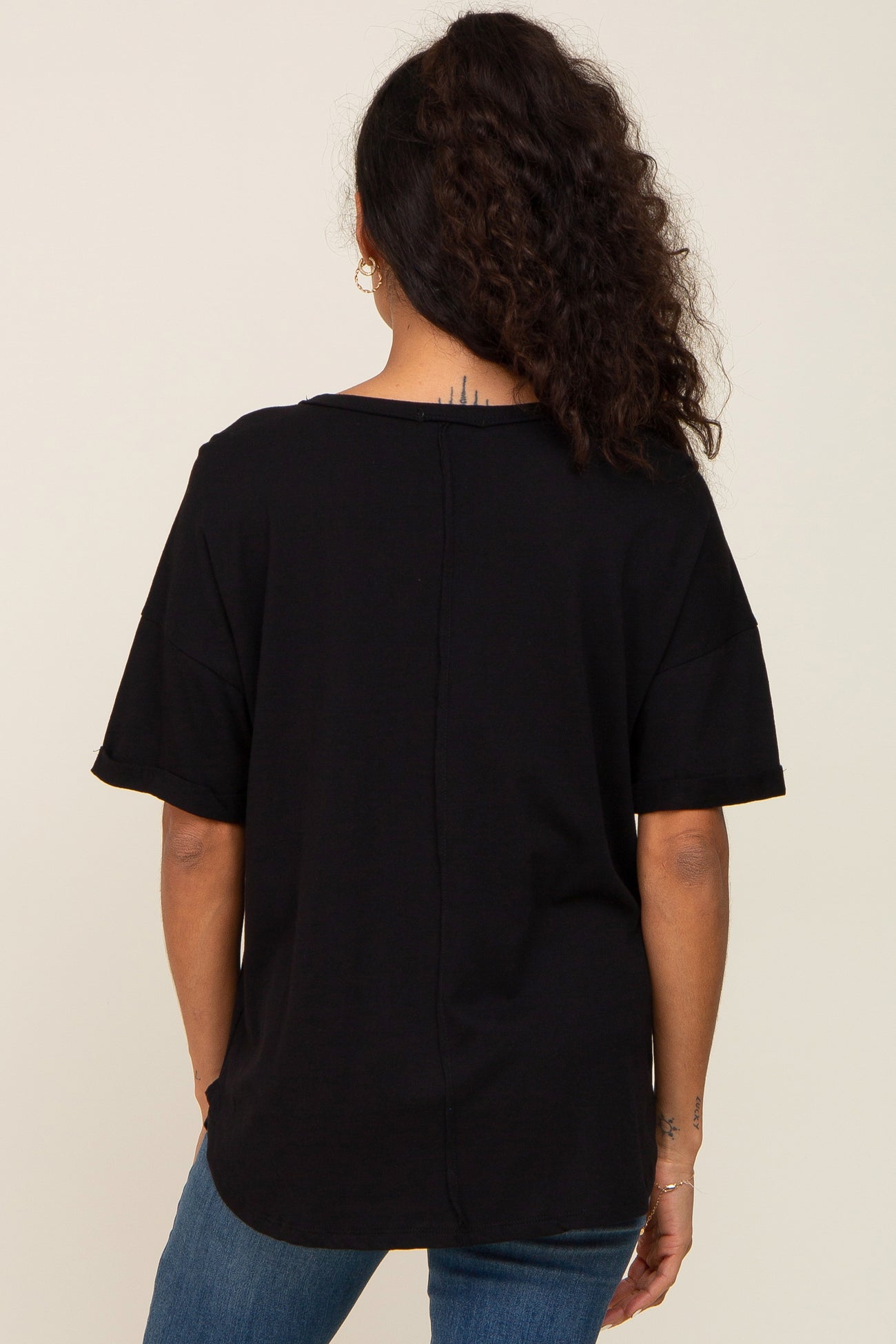 Black Oversized V-Neck Cuffed Short Sleeve Tee