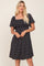 Black Printed Smocked Flutter Sleeve Dress