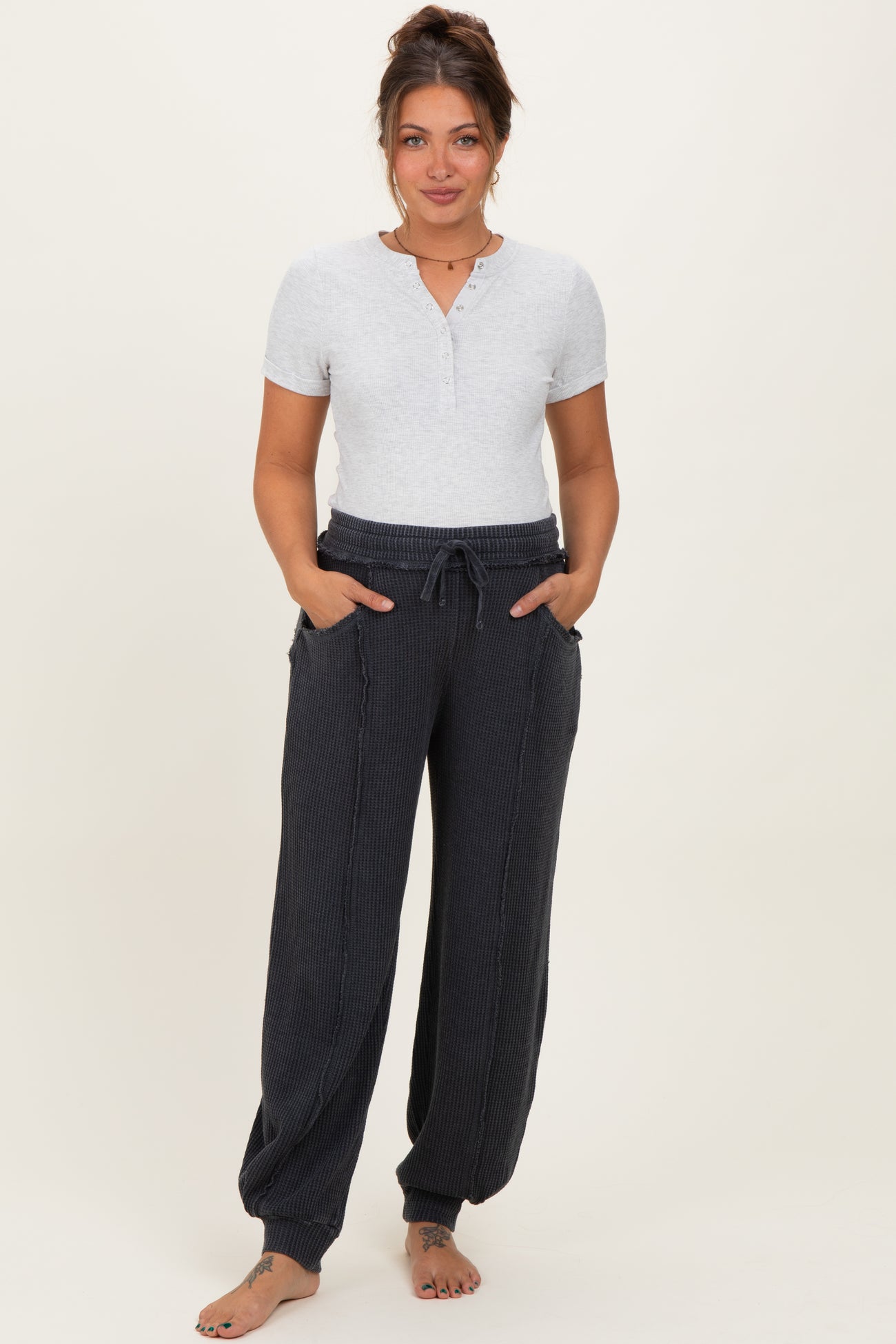 Experience ultimate comfort and style with our Black Raw Seam Waffle Knit Maternity Joggers. Designed with a soft waffle knit fabric, these joggers provide gentle stretch and breathability, perfect for your growing bump. Featuring a relaxed fit with ribbed cuffs and an adjustable drawstring waistband, they offer a customizable fit that moves with you. The raw seam detailing adds a trendy edge, while the side pockets offer practicality. Whether you're lounging at home or running errands, these joggers are a must-have for your maternity wardrobe. Easy to style and incredibly cozy!