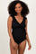 Black Rib Ruffle V Neck Side Tie Knot Swimsuit
