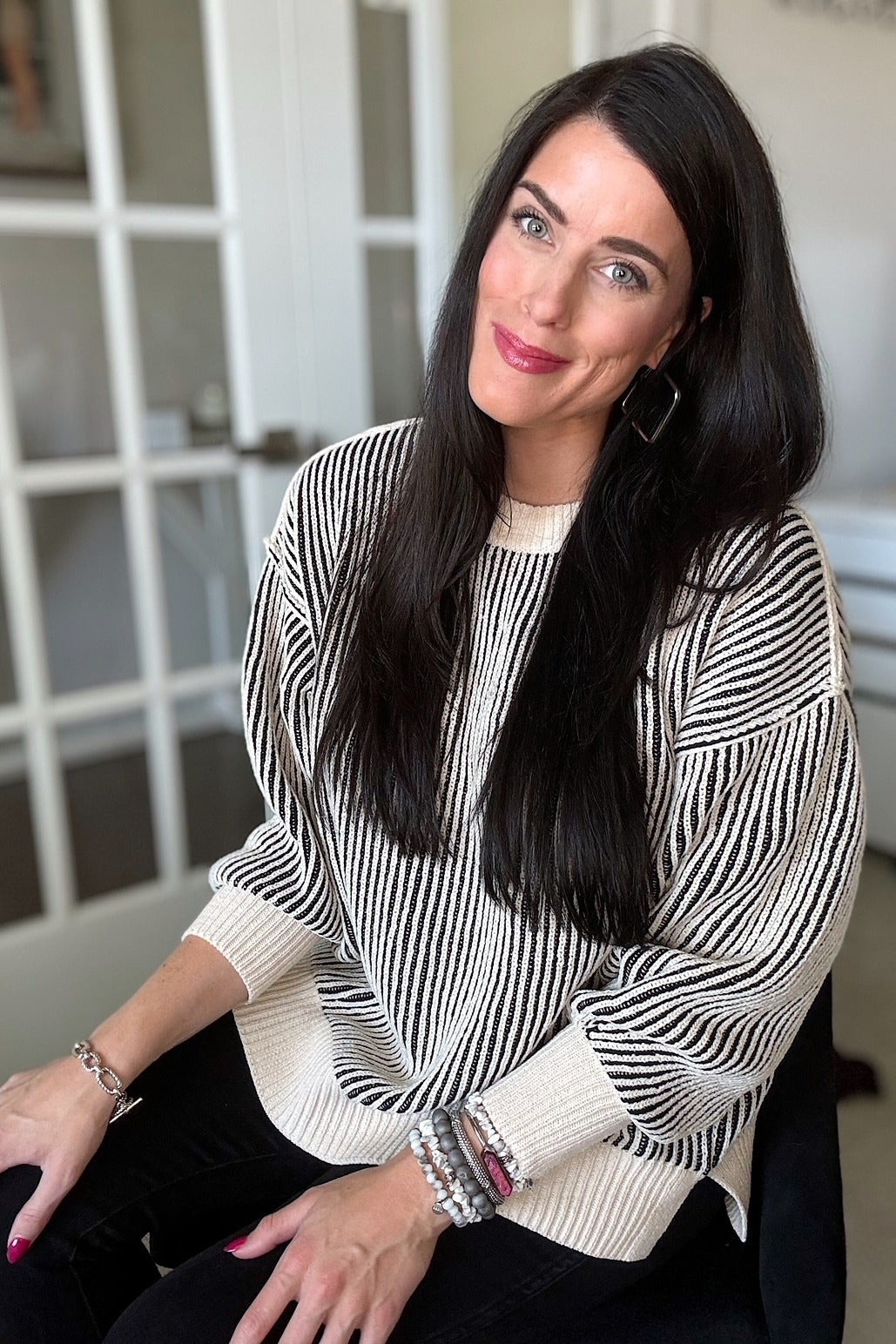 Elevate your cozy wardrobe with this stylish ribbed balloon sleeve sweater. Featuring a relaxed fit and unique balloon sleeves, it offers both comfort and a chic silhouette. The fine ribbed knit adds texture and depth, while the round neckline and ribbed cuffs ensure a polished finish. Perfect for layering or wearing on its own, this versatile sweater blends modern design with cozy warmth for effortless everyday elegance. Pair it with your favorite jeans or trendy trousers for a standout look that's both casual and sophisticated.