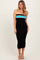 Black Ribbed Knit Striped Strapless Fitted Midi Dress
