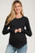A solid ribbed long sleeve maternity top with exposed seam details and rounded hem.