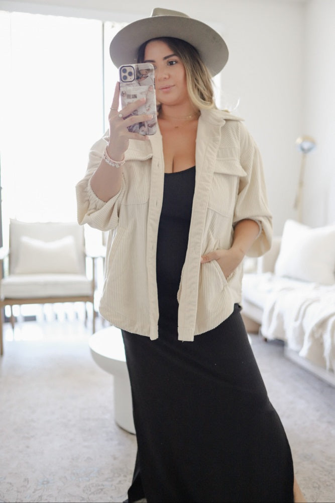 A solid ribbed maxi dress featuring cami straps, side slits and a v-neckline.
