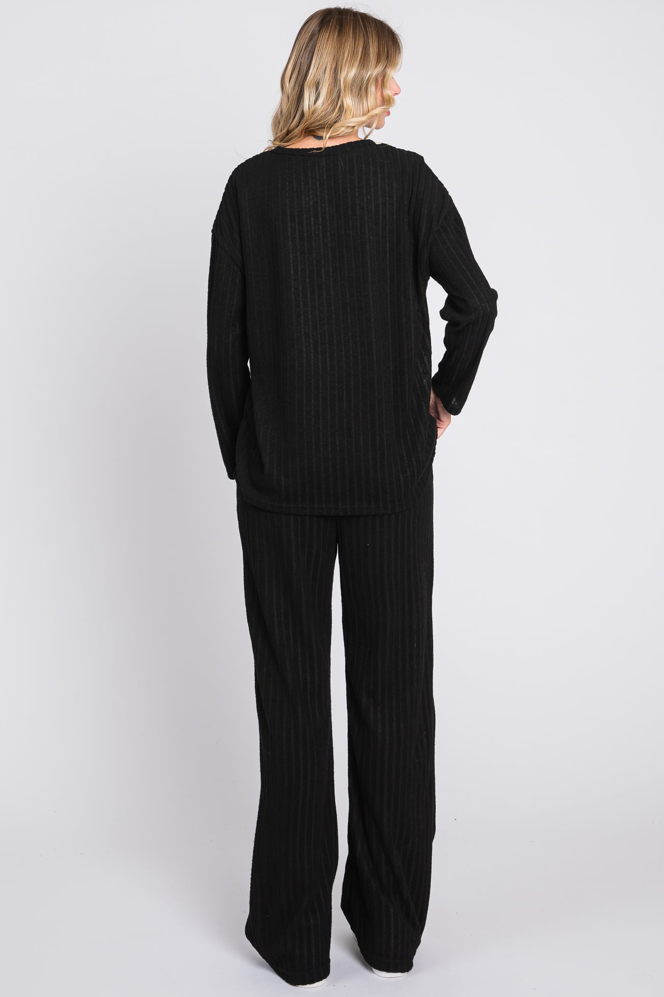 Black Ribbed Soft Knit Long Sleeve Pajama Set