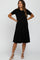 A solid ribbed short sleeve maternity dress with scoop neckline and tiered body.