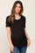 A ribbed knit maternity nursing top featuring a rounded neckline, short sleeves, a wrap front and easy access for nursing.