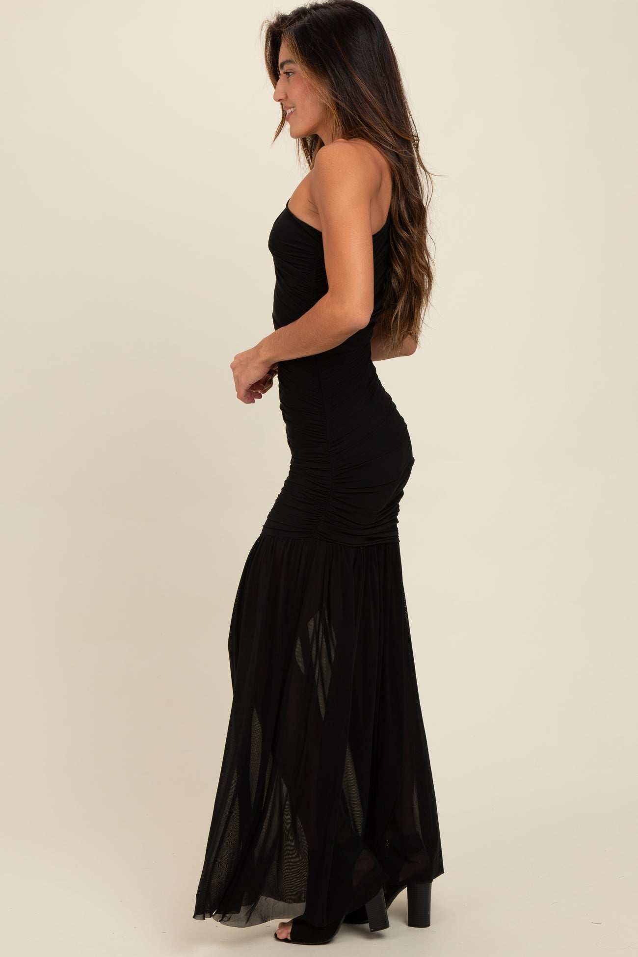 Elevate your evening look with this stunning Black Ruched Mesh One Shoulder Maxi Dress. Crafted with delicate ruched detailing, this dress beautifully contours your silhouette for a flattering fit. The one-shoulder design adds a chic, modern touch, while the flowing mesh skirt creates effortless elegance. Perfect for special occasions or glamorous nights out, this dress combines sophistication with a hint of allure. Pair it with your favorite heels and statement jewelry to complete your show-stopping ensemble. Feel confident and radiant in this timeless black maxi dress. Available in multiple sizes.