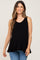 A solid maternity tank top with a scoop neckline and a hi-lo ruffle hem.