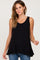 A solid tank top with a scoop neckline and a hi-lo ruffle hem.