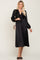 A solid satin midi dress with long sleeves. Features cutout bow tie front on bust. Hook eye zipper closure in back.