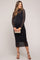 Black Shimmer Mesh Long Sleeve Ruched Maternity Midi Dress