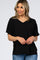 A solid hued blouse featuring short sleeves and a v-neckline.