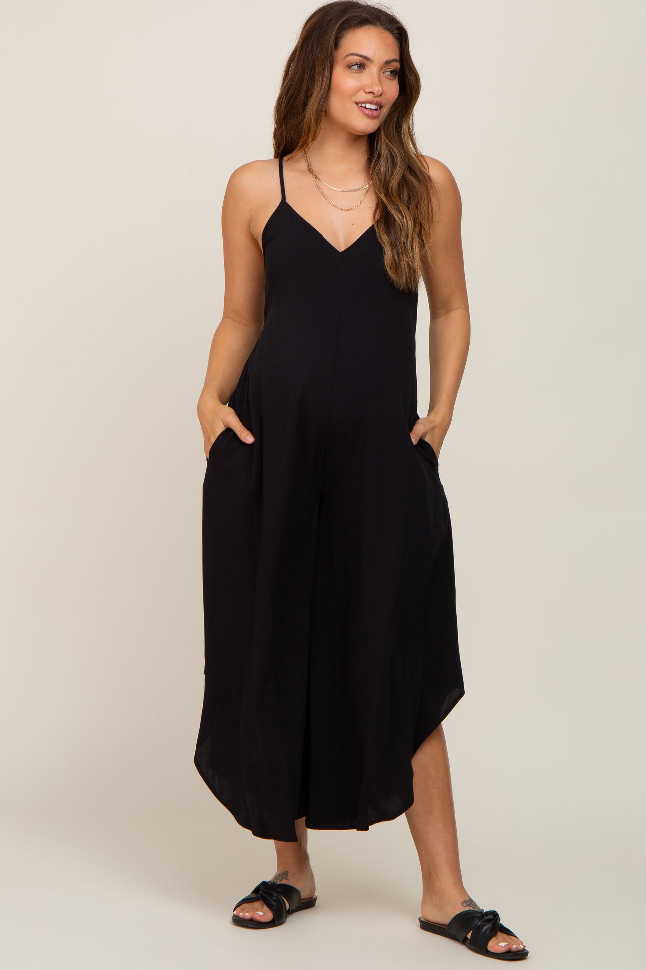 Black Sleeveless Asymmetrical Hem Maternity Jumpsuit
