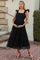Black Smocked Mesh Ruffle Accent Maternity Midi Dress