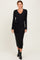 Black Solid Brushed Rib Long Sleeve V-Neck Fitted Midi Dress