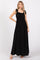A maxi dress featuring a square neckline, a ruched front detail, adjustable shoulder ties, an empire waist, side pockets and an A-line skirt.