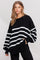 A striped knit, oversized sweater featuring a crew neckline, long sleeves and side slits.