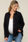 A textured maternity top featuring long sleeves, a button down front, pocket accents and a collared neckline.