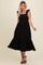 Black Textured Cotton Ruffle Strap Midi Dress