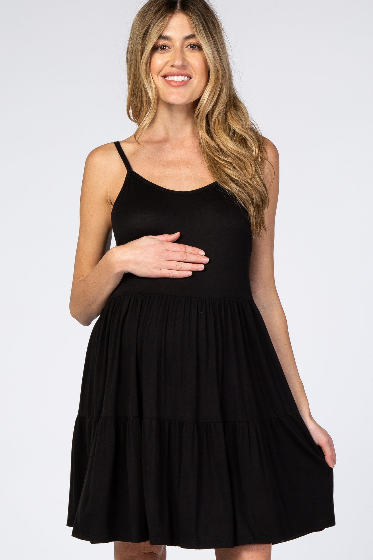 A tiered dress with a rounded neckline and a tie-up back detail.