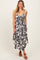 Black Tropical Floral Front Cinched Tie Midi Dress